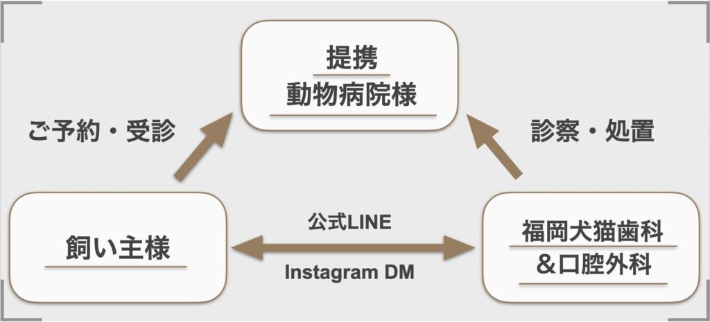- 福岡犬猫歯科&口腔外科は、複数の提携動物病院様にて診察・処置を行っています。